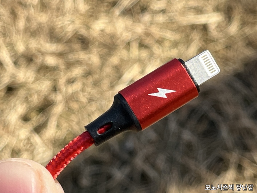 아이폰 14 시리즈까지 사용하고 하이패드 9세대까지 사용하는 라이트닝 8핀도 빨간색 케이블로 무난하게 만들어져 있습니다.