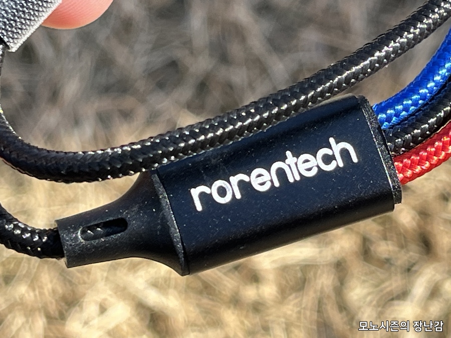 저렴한 제품이지만 패브릭 재질의 보호 케이블을 사용하고 있고 단선방지 디자인도 들어가 있고 rorentech 로고도 중간에 들어가 있기 때문에 그래도 믿고 살 수 있는 브랜드라 할 수 있습니다.