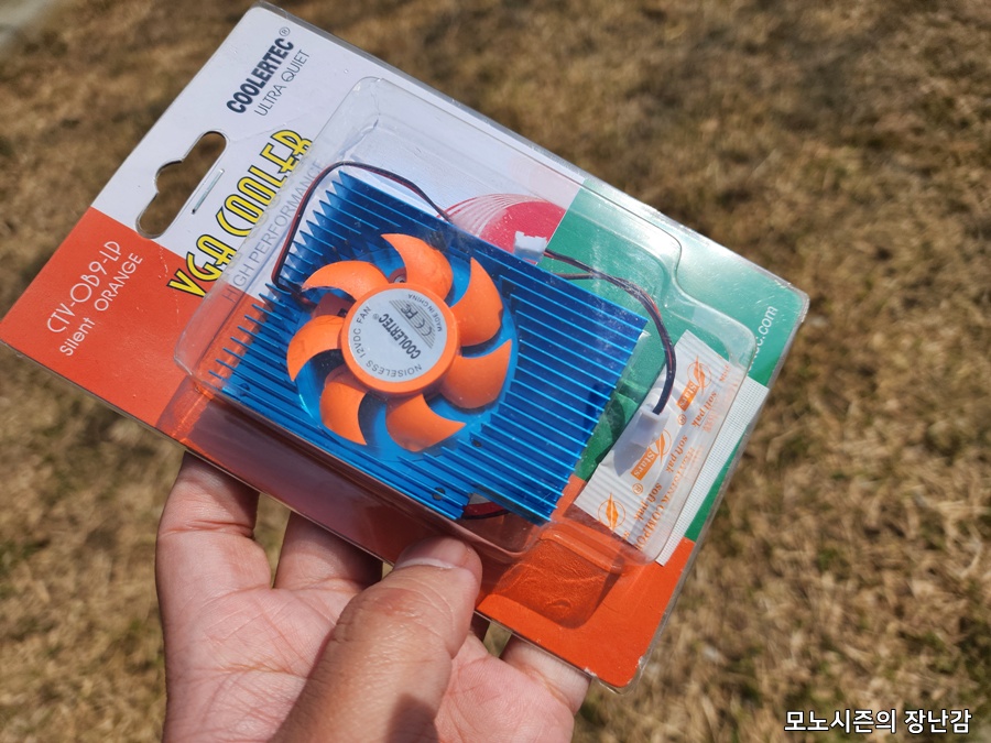 저렴한 가격대에 판매하는 VGA쿨러이기 때문에 포장은 평범한 수준으로 되어 있고 저렴한 가격대의 제품인데도 그래도 볼베어링 쿨링팬을 사용하고 있는 것이 특징입니다.