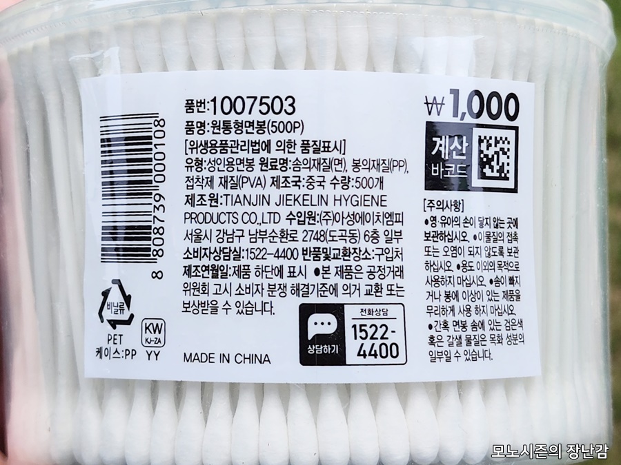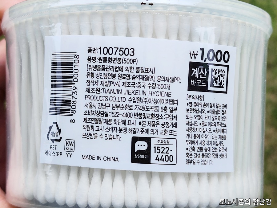 가격대가 저렴한 만큼 중국에서 생산한 제품인데 이 가격대에 판매하는 면봉들 대부분이 중국산인데, 이 제품은 다이소가 보증하는 제품인 만큼 믿고 사용할 수 있는 점이 장점입니다.