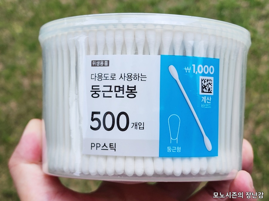 1000원이라는 착한 가격에 면봉 500개에 보관이 간편한 전용 플라스틱으로 만들어진 통까지 있기 때문에 면봉이 생각보다 보관과 관리가 번거롭다는 것을 감안하면 가격대비 좋은 선택일 수 있습니다.