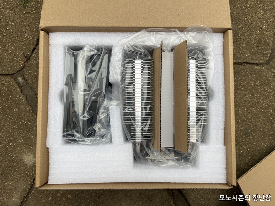 듀얼타워에 슬림해 보여서 구시대의 듀얼타워와 비슷하네? 생각했지만 슬림해 보이지만 실제로는 구시대에 만들어진 120mm 쿨링팬을 사용하는 제품보다 사이즈 자체가 큽니다. 제품이 착시효과가 살짝 있습니다.