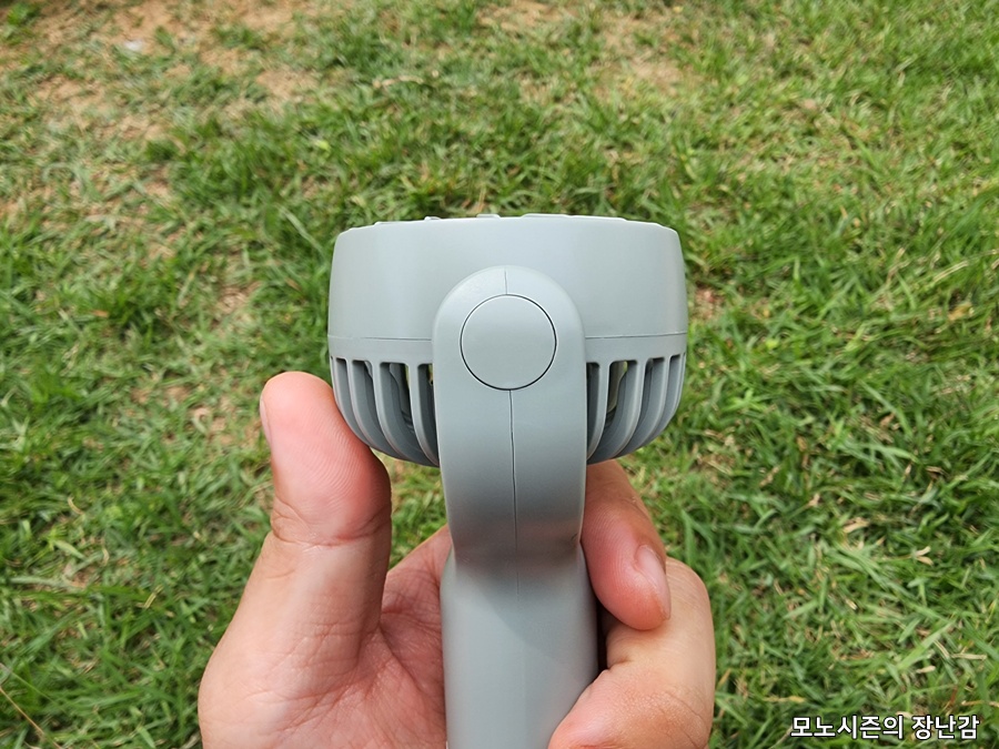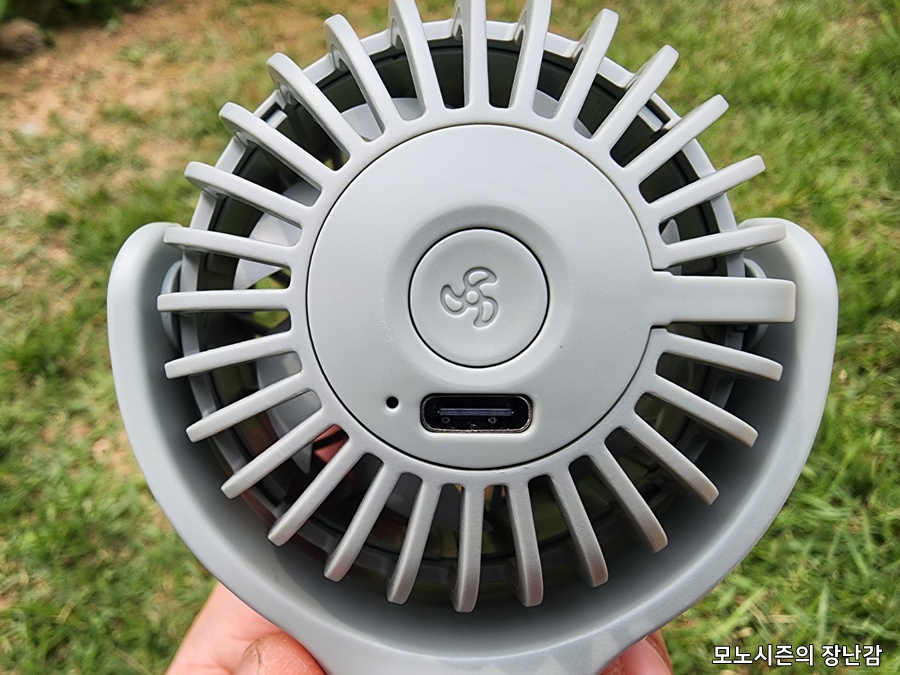 선풍기 헤드후면의 원버튼으로 제품을 조작하는 제품이기 때문에 사용이 직관적이고 편리하며, 후면 버튼 아래에 충전포트가 위치하고 있습니다.