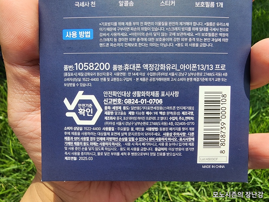 당연히 AG, AR 같은 반사방지 기능은 안들어간 제품이기 때문에 반사율은 높지만 기본형 제품이라서 저렴하고 쉽게 구매할 수 있으며 인터넷 제품들과 다르게 생산된지 오래된 재고품이 아닌 최신 생산품을 살 수 있다는 점이 다이소의 매력입니다.
