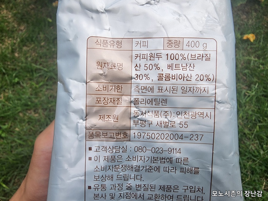 신선도를 유지할 수 있는 아로마 밸브가 달린 포장을 사용하고 있고 용량은 400g인데 가격은 1만원 이하여서 기존에 팔던 브랜드들보다 확연히 저렴한 가격대로 판매중인 제품입니다.