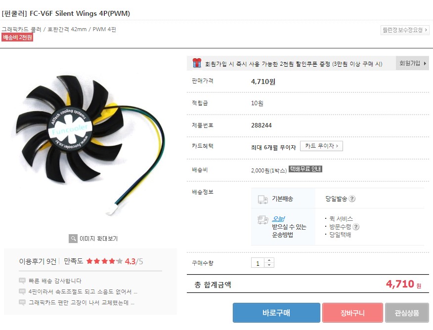 그래서 컴퓨존에서 쿨링팬을 보던중에 펀쿨러에서 판매중인 FC-V6F Silent Wings 4P(PWM)을 두개 주문했습니다.