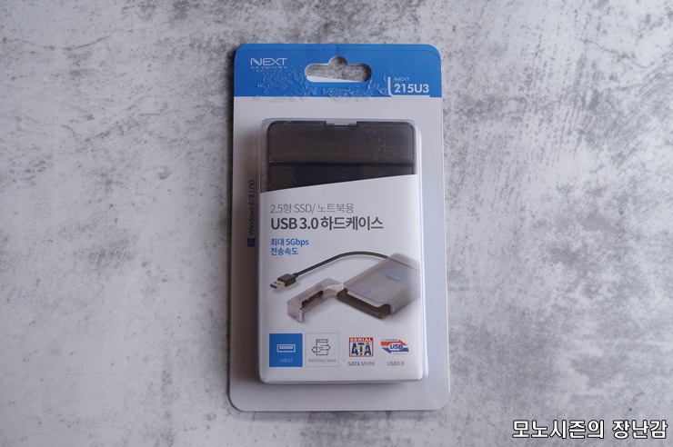 가격은 쇼핑몰마다 틀리지만 운송료 포함해도 1만원 이내에 구매가 가능한 저렴한 가격대에 판매중인 제품으로 USB 3.0인터페이스를 사용하는 제품이고 노트북용 2.5인 하드디스크나 SSD를 넣어서 외장하드로 만들 수 있습니다.