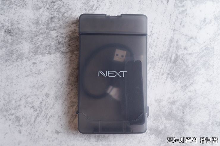 위와 같이 블랙색상의 반투명 원터치로 열 수 있는 본체인데, 얼핏보면 그냥 일반 외장케이스보다 더 길이보이지만 실제로 길이차이는 별로 없습니다.