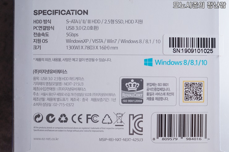 주변사람들 노트북을 SSD로 업그레이드하면서 생긴 하드디스크를 보통 외장하드디스크로 만들어주거나 만들어서 사용하는데, 10년전 노트북에서 꺼낸 히타치 500GB짜리 하드디스크가 있어서 외장하드로 만들려고 이지넷유비쿼터스 NEXT-215U3 외장케이스를 구매했습니다.