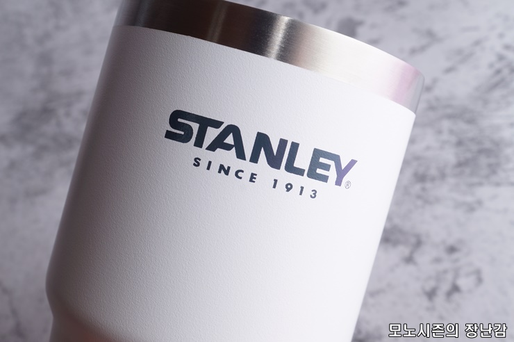 종이포장을 벗기면 스탠리 영문로고가 붙어 있는 진짜 컵외관을 볼 수 있는데, 컵의 페인트 재질 자체가 일반적인 국내에서 파는 저가형 텀블러들이 쓰는 싸구려틱한 페인트가 아니라 반광의 고급스러운 페인트를 사용해서 마감되어 있습니다.
