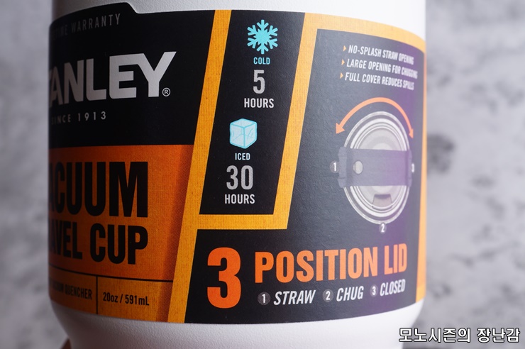 국내에 파는 진공컵들 중에서 외부에 페인팅된 제품들 대부분이 입이 닿는 부분도 페인트칠이 되어 있어서 살짝 찝찝한 경우가 있는데, 스탠리 제품은 위와 같이 입이 닿는 부분은 그냥 스테인레스가 보이도록 해서 이 찝찝함을 없애주고 있습니다.