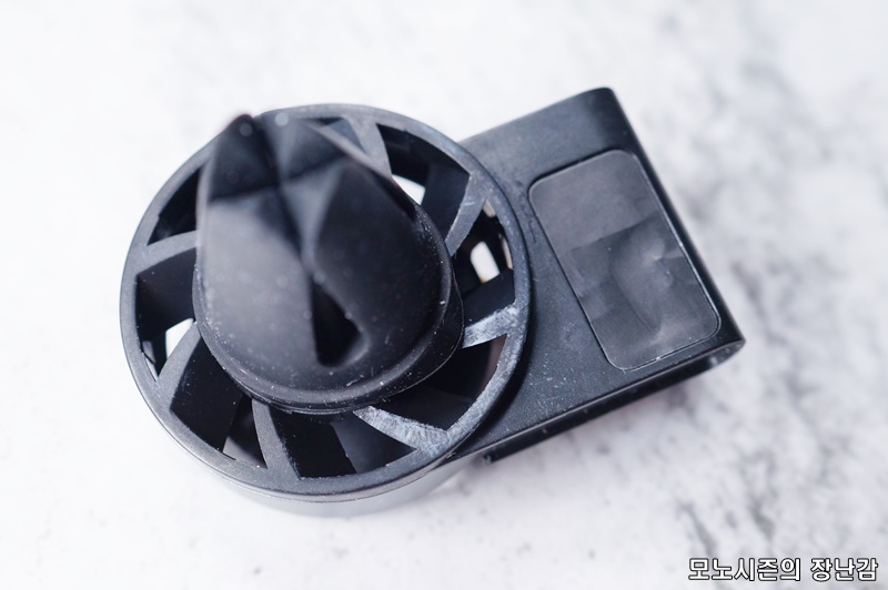 장착방식은 일반적인 송풍구형 스마트폰거치대랑 동일하고 거치되는 부분이 고무재질이기 때문에 차량에 손상이 없는 방식입니다.