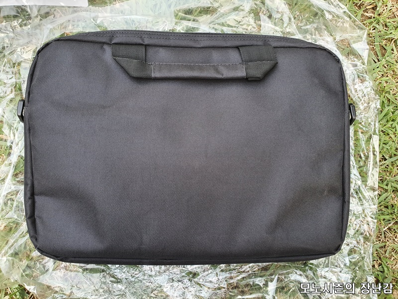 노트북이 들어가는 메인공간에의 양쪽에는 충격흡수 스폰지가 들어가 있기 때문에 어느정도 외부 충격으로부터 노트북을 보호해줄 수 있으며, 노트북 공간이 더 큰 사이즈 가방들이 두공간으로 파티션이 되어 있지만 이 제품은 파티션 공간이 없기 때문에 노트북을 휴대한다면 서류 같은 것도 들어가긴 하나 공간을 나눠주는 파티션이 없기 때문에 불편할 수 도 있겠으나 1만원도 않하는 몇천원짜리 가방이라는 것을 감안하면 이해할 수 있는 부분입니다.