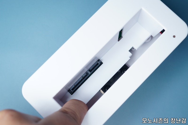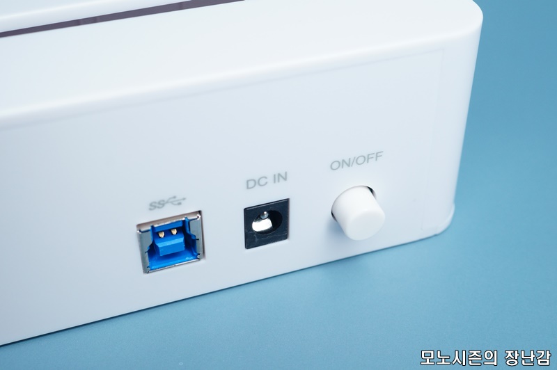 전원 버튼은 도킹스테이션의 전원을 완전히 꺼주기 때문에 컴퓨터에 연결된 상태로 하드디스크를 교체할 때에 편리하게 사용 가능하고 간간히 쓰는 백업용일 경우에도 유용하다고 할 수 있습니다.