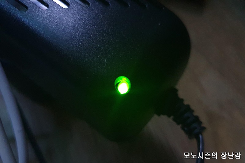 전원 어댑터는 사진처럼 콘센트에 꼽으면 그린 LED가 켜지기 때문에 전원이 들어오고 있는지 아닌지를 확실히 파악할 수 있습니다.