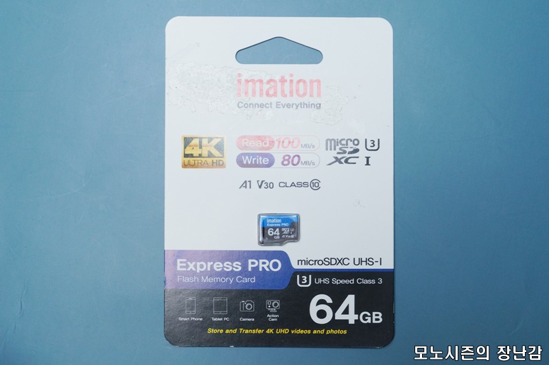 이메이션 Express PRO 64GB SDXC 제품은 V1, V30, CLASS10, UHS-I U3를 지원하는 제품으로서 4K UHD 영상 촬영을 할 수 있는 속도를 가지고 있는 제품입니다.
