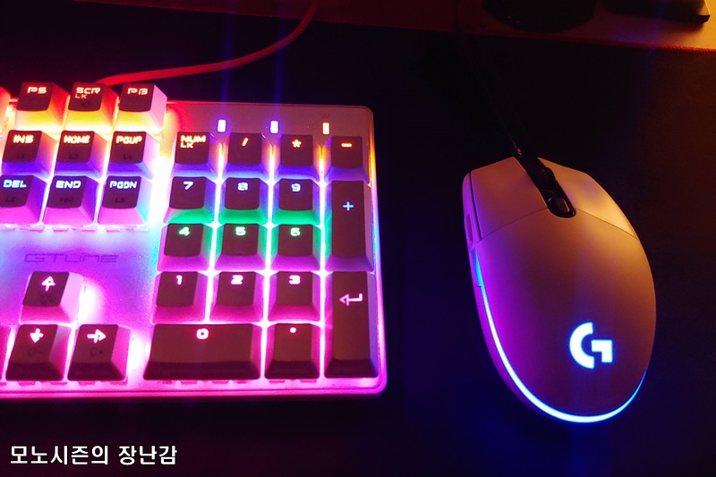 로지텍 G102 IC 화이트 제품으로 블랙과 화이트 두가지 중에 선택이 가능하고 초기에 블랙을 사서 사용했었는데, 지금 쓰는 키보드가 화이트라서 화이트를 구매했는데 미리 말하지만 G102 IC는 무조건 화이트가 갑입니다.