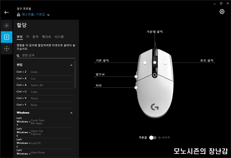 사용하는 앱이나 응용프로그램, 게임에 따라서 각각의 프로필을 설정할 수 있고 해당 응용프로그램 동작시 자동으로 프로필이 적용되게 하는 것도 가능해서 확실히 로지텍 제품들의 소프트웨어 지원은 타사가 따라하지 못할 정도입니다.