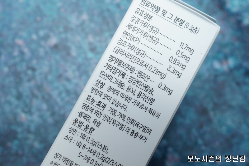 사진에는 정량오버이지만 정확히 1스푼(넘치는 것 제외)이 성인이 1회 섭취할 수 있는 용량이고 1스푼만으로도 왠만큼 목이 답답하거나 불쾌하거나 막힌 증사잉 있을때에도 확실한 효과를 주는 제품이고 1만원 주고 한곽사면 단순 계산으로도 183번이나 먹을 수 있는 제품이기 때문에 따라올 수 있는 제품이 없습니다.