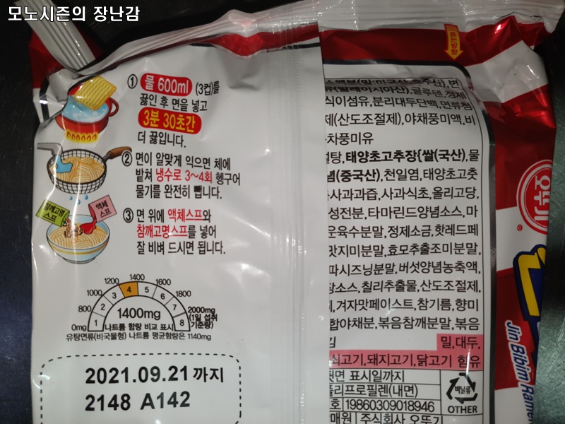 오뚜기 진비빔면 : 나트륨 1400mg, 내용량 156g, 625kcal