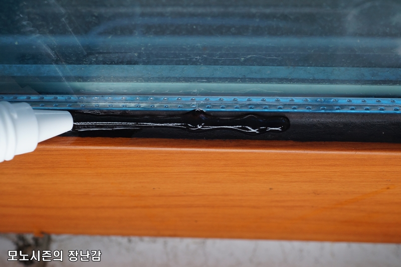 사진처럼 창문 윗쪽을 많이 발라도 5시간 방치 시간동안 흘러내리지 않기 때문에 안심하고 충분히 발라야 합니다.