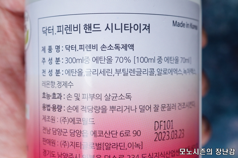 에탄올 함량이 70%인 제품이기 때문에 분사했을 때에 레몬향이 첨가된 제품이지만 에탄올 냄색사 진라게 다가오는 제품으로 에탄올과 피부보습 성분이 모두 들어간 제품이기 때문에 피부에 뿌려서 사용해도 안전한 제품이고 빠르게 증발하는게 인상적인 제품입니다.
