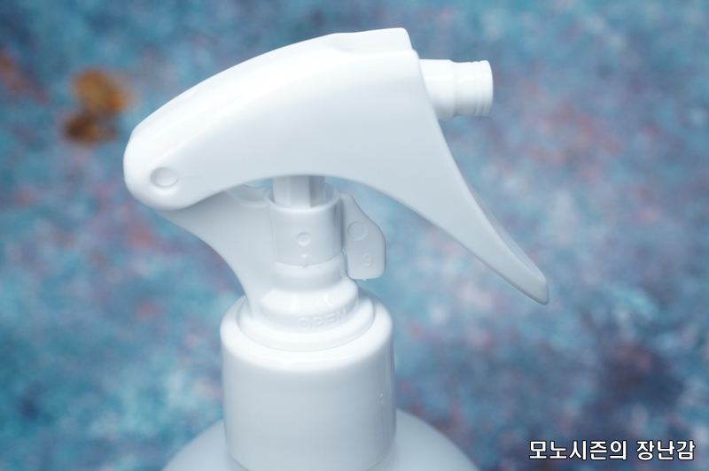 장착된 스프레이는 미세분사형 제품이고, 스프레이 잠금 기능을 제공하기 때문에 아이들이 있는 집에서도 안전하게 사용할 수 있기 때문에 신경써서 만든 제품이라 할 수 있으며 스프레이 압력도 무난한 편입니다.