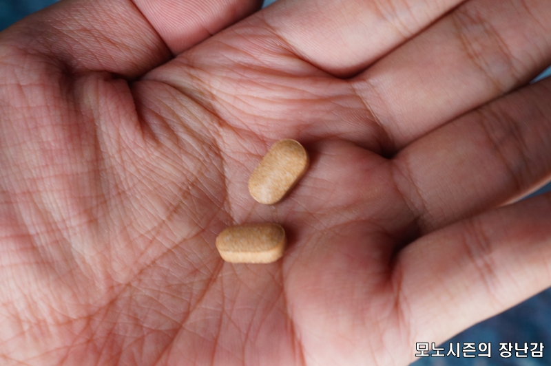 500mg용량의 제품이기 때문에 목넘김에 크게 문제가 안되는 사이즈라고 할 수 있으며, 앞서 이야기 했듯이 혀로 맛보는 것은 추천하지 않습니다.