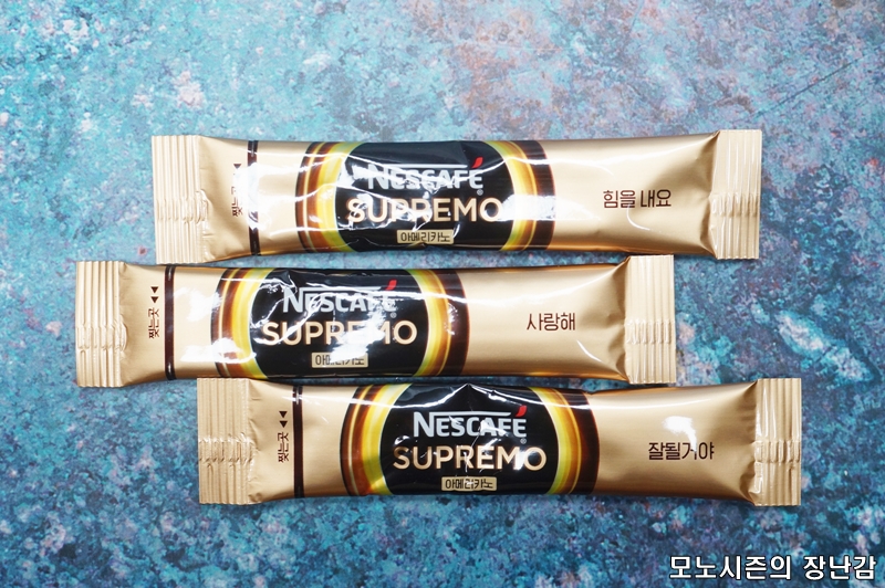 요즘 가은 코로나 시대에 제품에 희망적인 메세지를 적는게 유행이라면 유행인데, 네스카페 수프리모 아메리카노도 스틱별로 각각 다른 희망적인 메세지들이 적혀 있습니다.