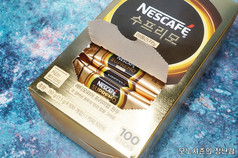 네스카페 수프리모 아메리카노 제품은 주로 병포장으로된 90g제품만 여러번 구매했었는데, 병포장이 용량대비 가격이 저렴한 것은 사실이지만 불편해서 스틱형 제품인 네스카페 수프리모 아메리카노 100T제품을 샀습니다.(내돈내산)