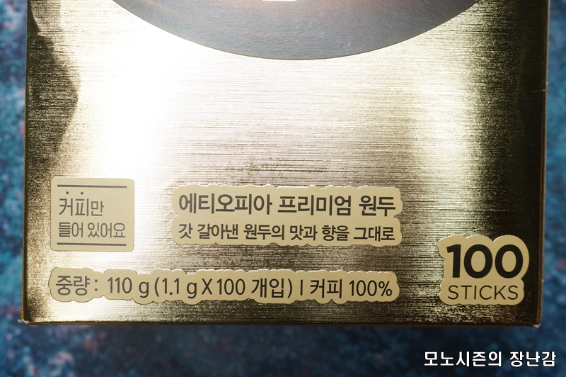 특이한 점은 보통 대부분의 스틱형 인스턴트 커피는 100ml전후의 물을 사용하는 용량으로 스틱커피 용량이 설정되어 있는데, 이 제품의 스틱당 용량은 1.1g으로 1g이 안되는 대부분의 유명 브랜드 제품보다는 약간 많이 들어가 있습니다.