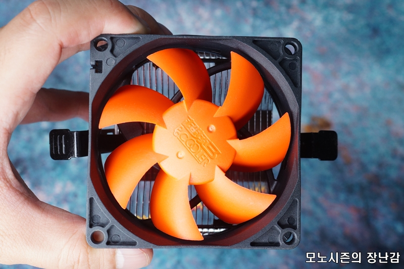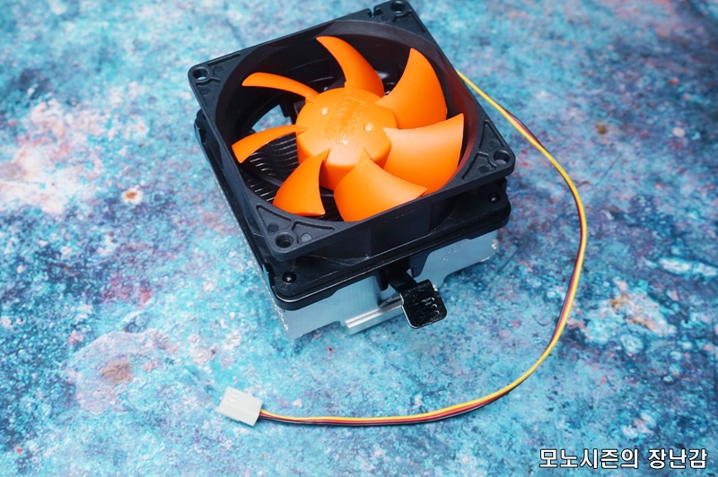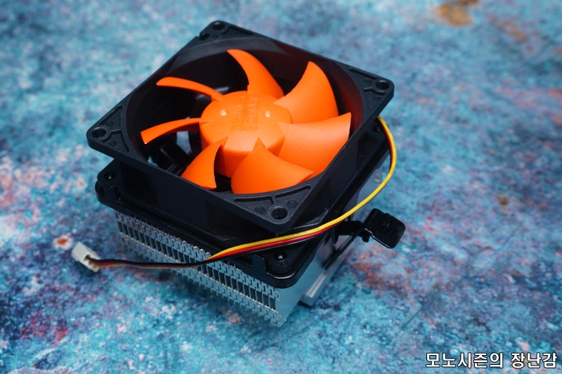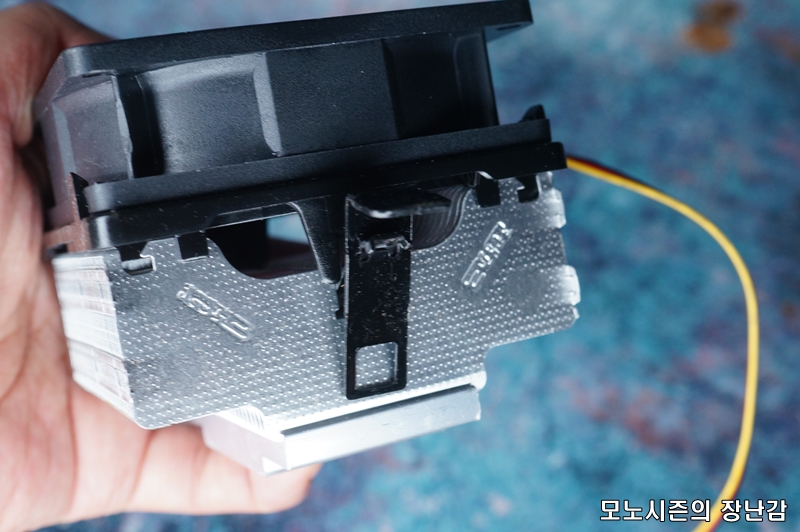 방열핀이 통알루미늄 쿨러보다 얇고 많기 때문에 열발산 면적을 늘린 제품이기 때문에 80mm 2000rpm이 안되는 쿨링팬으로도 순정 초코파이보다 쬐끔 더 나은 쿨링성능을 가지고 있는 제품입니다.