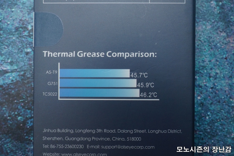 ALSEYE AS-T9 MONSTER는 Atomic 나노기술이 들어간 제품으로 설명하는 것 같은데, 기본적으로 열전도 스펙은 11W/m-k로 스펙자체는 높은 편이지만 2g에 3000원이 안되는 금액이면 스펙대비 상당히 저렴한 제품이고 원래 가격인 5000원 중반대면 비슷한 스펙의 제품들이 많기 때문에 강점이 희석됩니다.