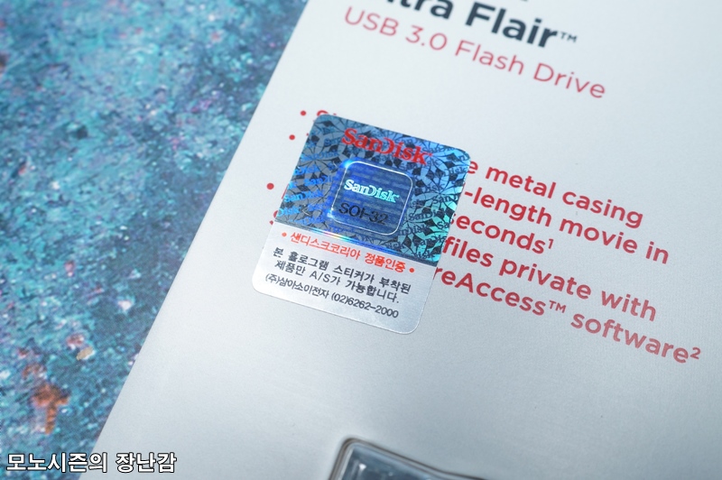 32GB가 워낙 저렴한 가격대의 제품이여서 A/S받을려면 택배로 왔다갔다 해야 하기 때문에 그 비용을 생각하면 A/S보다는 쓰다가 고장나면 버리는게 맞을 수 있으나 샌디스크 소이전자 제품을 여러개 사용하고 있어서 혹시 모르니 홀로그램 스티커를 메모리에 부착했습니다.