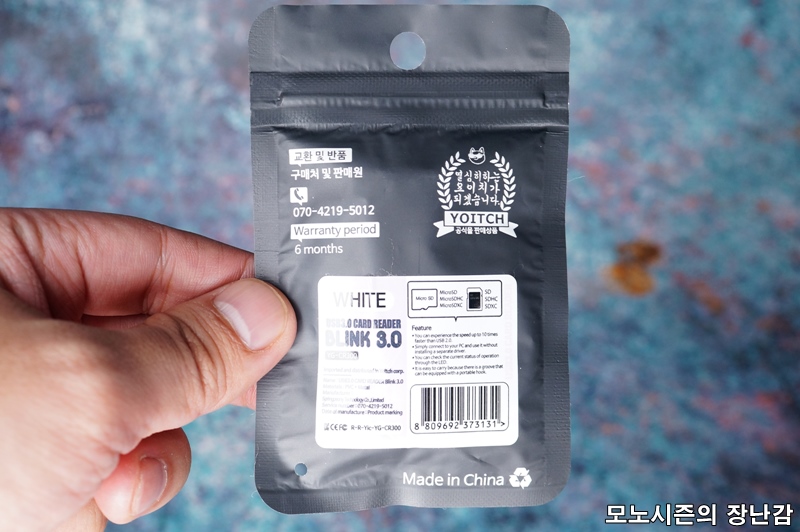 보통 리더기를 구매하면 플라스틱 포장에 들어 있는 경우가 많지만 요이치 USB 3.0 YG-CR300 SD카드 리더기는 지퍼백 포장으로 독특하다고 할 수 있습니다.