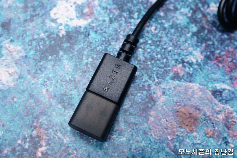 USB커넥터는 보호캡이 달려 있으며 금도금 처리되어 있고 마우스 커넥터와 마우스쪽 모두 단선방지 처리가 되어 있으며 마우스의 선재질도 부들부들한 재질이 사용되었기 때문에 게임이나 작업에 방해되지 않습니다.