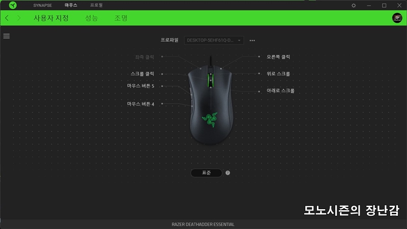 전용 소프트웨어인 레이저 스냅스는 평범한 인터페이스이고 직관적이기 때문에 마우스의 기능설정을 쉽게 할 수 있어서 편리합니다.