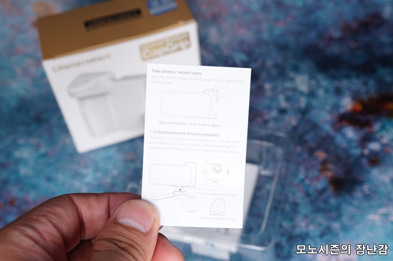 앞서 이야기한대로 반셔터는 안되지만 스마트폰의 화면을 가리지 않고 안정적으로 스마트폰을 파지할 수 있고 안정적인 셔터를 얻게 되며, 하단에 튼튼한 삼각대 소켓에 삼각대를 연결할 수 있는 것도 장점입니다.