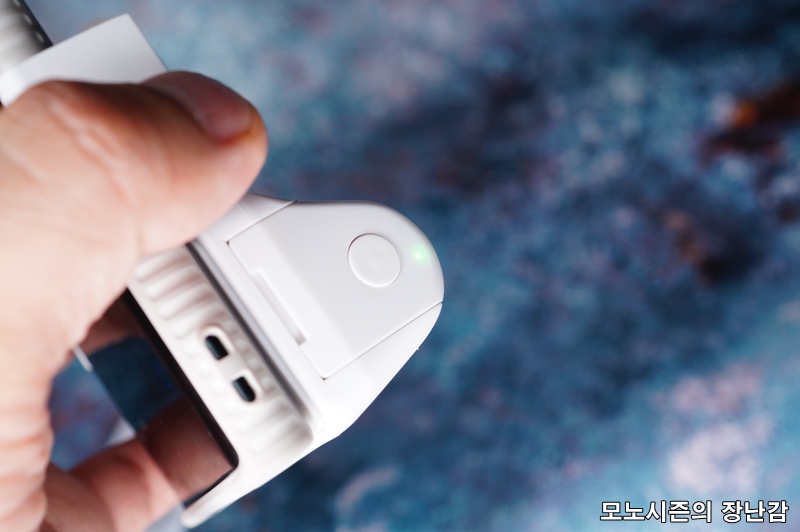 셔터버튼을 길게 누르면 전원이 들어오고 다시 길게 누르면 전원이 꺼지는 타입이며, 전원이 켜지만 그린LED가 깜빡이면서 동작중임을 알려줍니다.