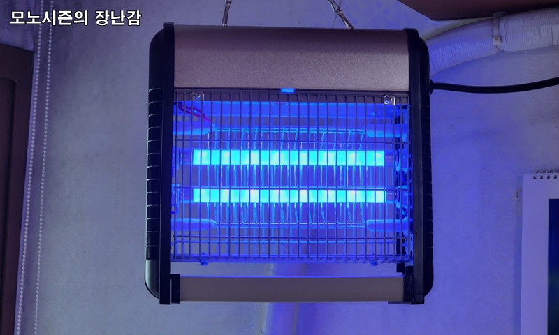 전기살충기 혹은 전격살충기라고 판매되는 날벌레나 모기를 감전시켜서 죽이는 제품을 1년 정도 사용을 했었는데 효과가 생각보다 좋아서 1년내내 야간에 거실에 켜놓고 살았습니다.